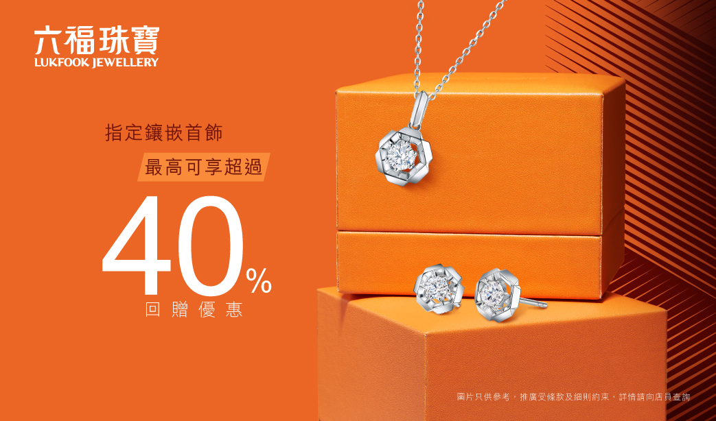 - 指定鑲嵌類首飾最高可享超過40%回贈優惠
