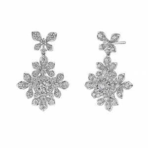 愛意嫣然,繁花傾綻。以18K金細膩勾勒流麗的線條,呈現出一片片清新靈動的葉片,綴以晶瑩的天然鑽石閃爍輝光,光影交錯間。猶如在風中翩然舞動的精靈,為新娘優雅的美態注入清新的活力與盎然的詩意。運用放閃車花工藝,令主石盡顯閃亮。鑽石項鏈亦有同款鑽石吊墜或珍珠鑲鑽吊墜可配,也可獨立佩戴,靈活配適各種場合。