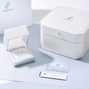 閃爍的天然鑽石和純淨的鉑金相映,見證浪漫不渝的真愛。DiaPure只篩選「無熒光」或近乎「無熒光」的弱熒光級別鑽石,配以4C標準嚴選把關,呈現如水般清澈的美鑽。設計師將DiaPure中字母「D」和「P」融合於簡約大氣的設計之中,側面彷如「無限」的符號結合立體的心形,以簡約的四爪鑲嵌盡現鑽石的璀璨之美。以稀有純淨的鉑金配合代表恆久的鑽石,將愛情堅定不移地延續下去。