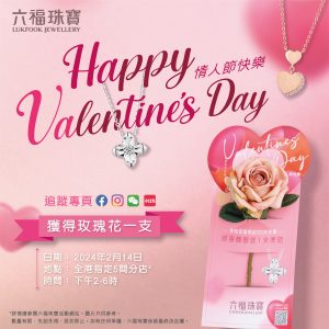 情人節當天,顧客於指定六福珠寶店舖,向店員出示已追蹤或關注指定之六福珠寶社交平台專頁的頁面,即可獲得「譜出戀曲」玫瑰花一支。