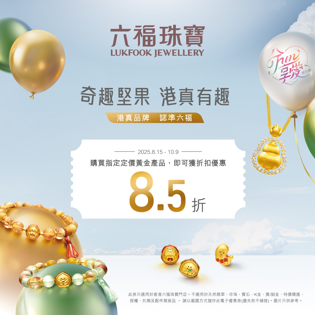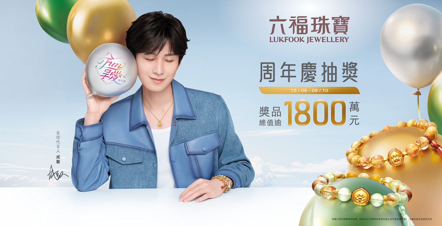 六福珠寶為慶祝周年慶,推出一系列抽獎及店舖活動與大家 ”FUN”享愛。2025年8月15日至10月9日期間,於六福珠寶香港或澳門實體專門店惠顧任何珠寶首飾及成為會員,可即時參加抽獎1次。而只要該次消費金額滿2萬元,即可獲額外1次抽獎機會;其後消費每滿1萬元,可額外獲抽獎機會1次,如此類推。每張銷售單最多可獲10次抽獎機會。抽獎活動獎品豐富,包括大獎鑽石首飾(共20名)、二獎價值$1,000購物扣減優惠等,送出總值超過1,800萬元獎品^。