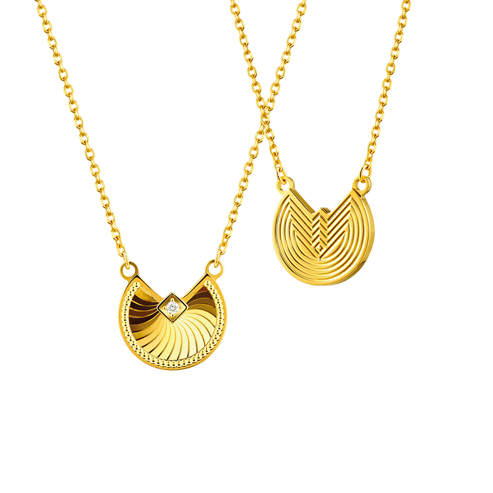以甜美的心形為設計靈感,捕捉初見時的怦然心動。設計師採用獨特的3D鑽石切割工藝,經鐳射無焊料焊接後造成的蜂巢圖案,猶如閃耀派對上的鏡球,閃閃發亮,嶄新的工藝令Goldstyle首飾多維度呈現出微鼓的效果,立體度更強。愛心鏈墜在多角度的光影折射間綻放奪目光芒,倍添閃爍效果,設計簡約,氣質百搭。項鏈還有Goldstyle.X鑲鑽款以迎合不同風格的需求,展現出黃金的華麗和鑽石的璀璨融合,釋放摩登閃耀的時尚之美。浪漫而精緻的心形,能將你的真情傳遞給重要的人,表達出心動的喜悅。