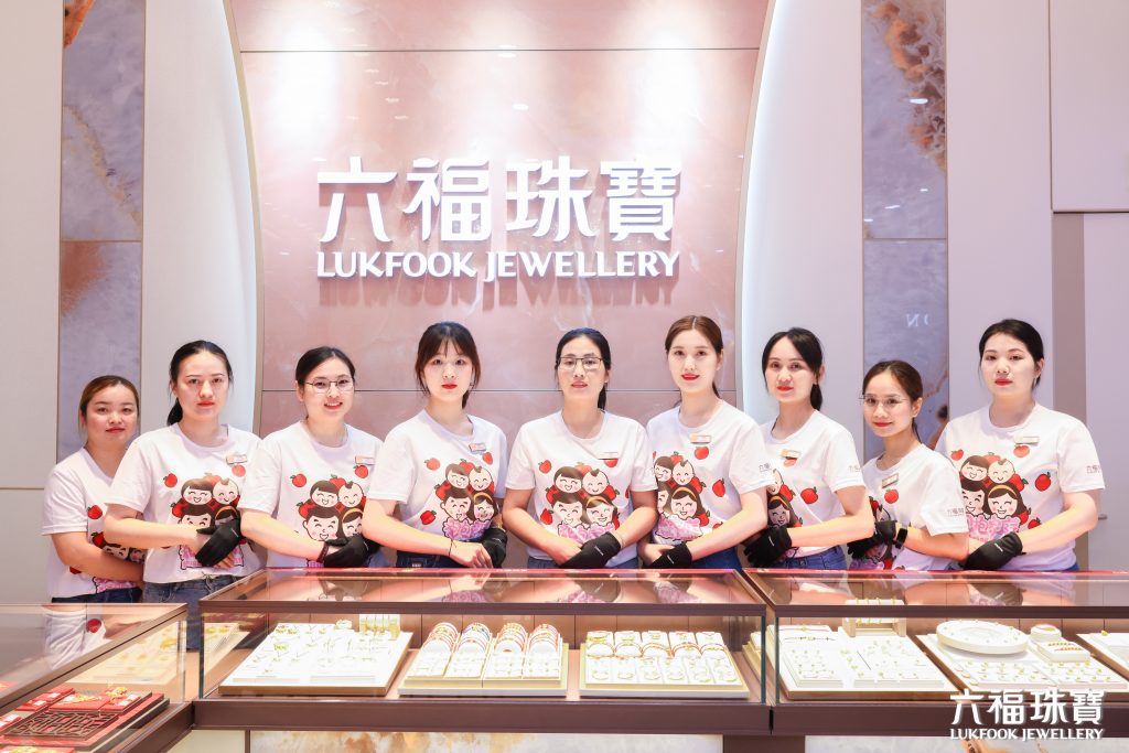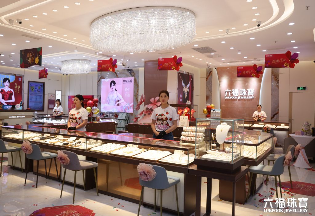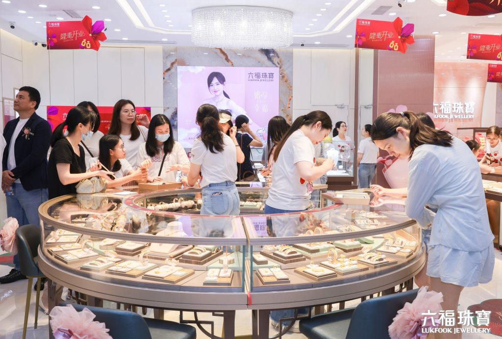 該「六福專櫃」採用簡約時尚裝潢形象,與華美奪目的珠寶首飾交相輝映,為顧客打造出一場視覺與品味的雙重盛宴。開業當天,店內賓客絡繹不絕,導購人員熱情周到地服務,現場氛圍熱鬧非凡,令人感受深刻,流連忘返。