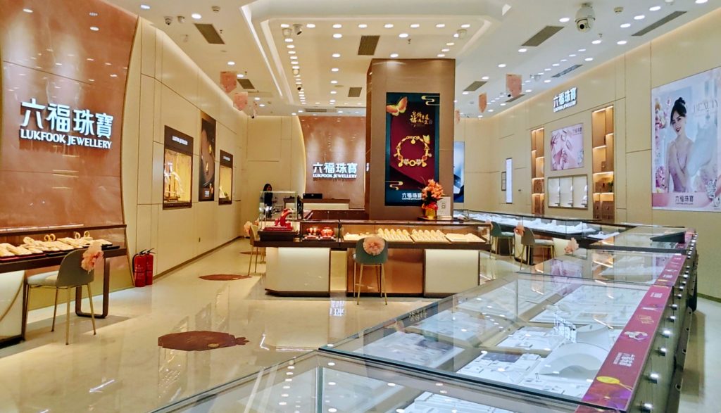 該六福珠寶專櫃面積120平方米,採用全新「7G」裝修風格,內部空間典雅通透,珠寶設計匠心獨運,無一不展示著品牌的奢華魅力,讓每一位進店的顧客充分體驗到鑒賞珠寶時帶來的愉悅感受。開業當天,賓客往來不絕,導購熱情周到,現場熱鬧非凡。