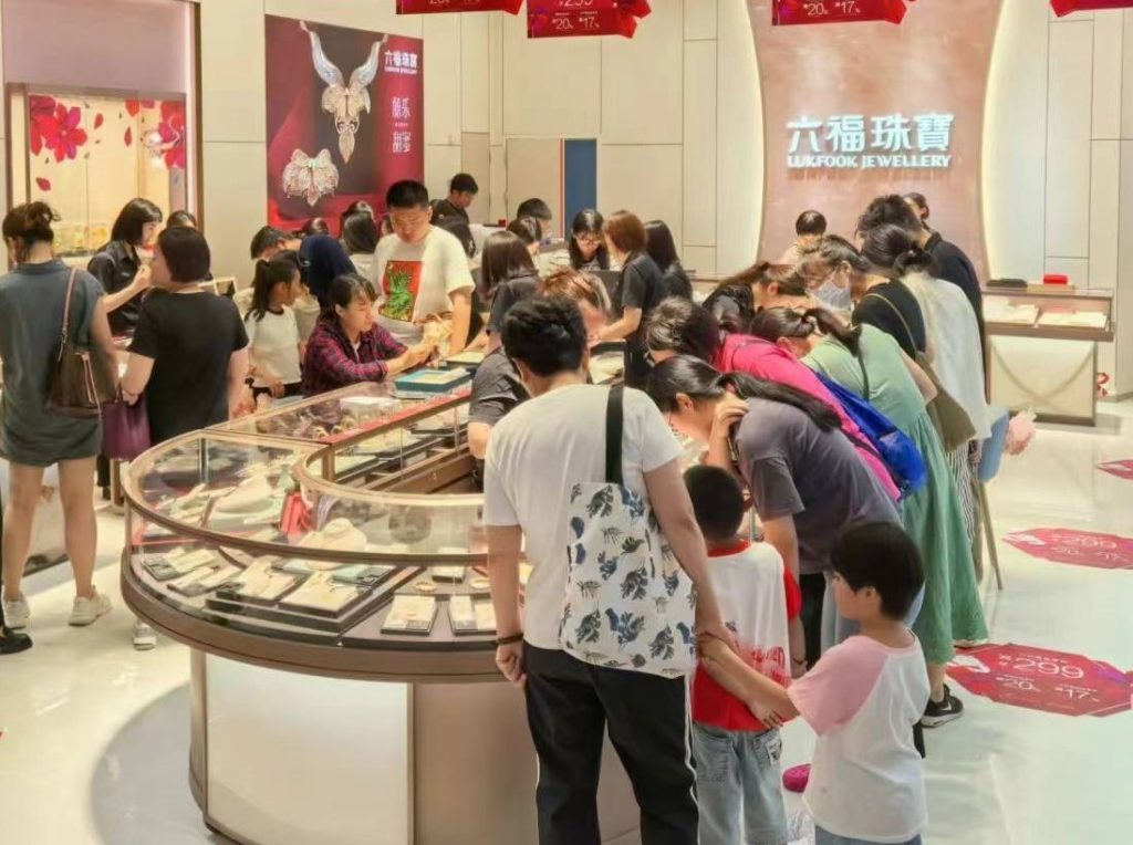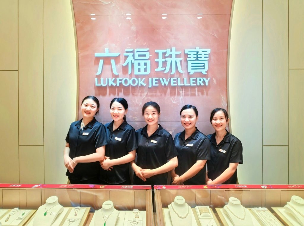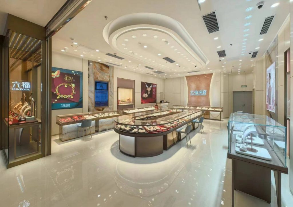 該「六福專櫃」裝潢寬闊明亮,高雅獨特。店內的珠寶首飾工藝精湛、璀璨奪目,進店的顧客紛紛駐足欣賞及選購。映襯著華燈渲染下的琳琅珠寶,流光溢彩、滿堂生輝。專業銷售顧問熱情細緻的推介,給每一位蒞臨賓客帶來了極為舒適、愉悅的購物體驗。