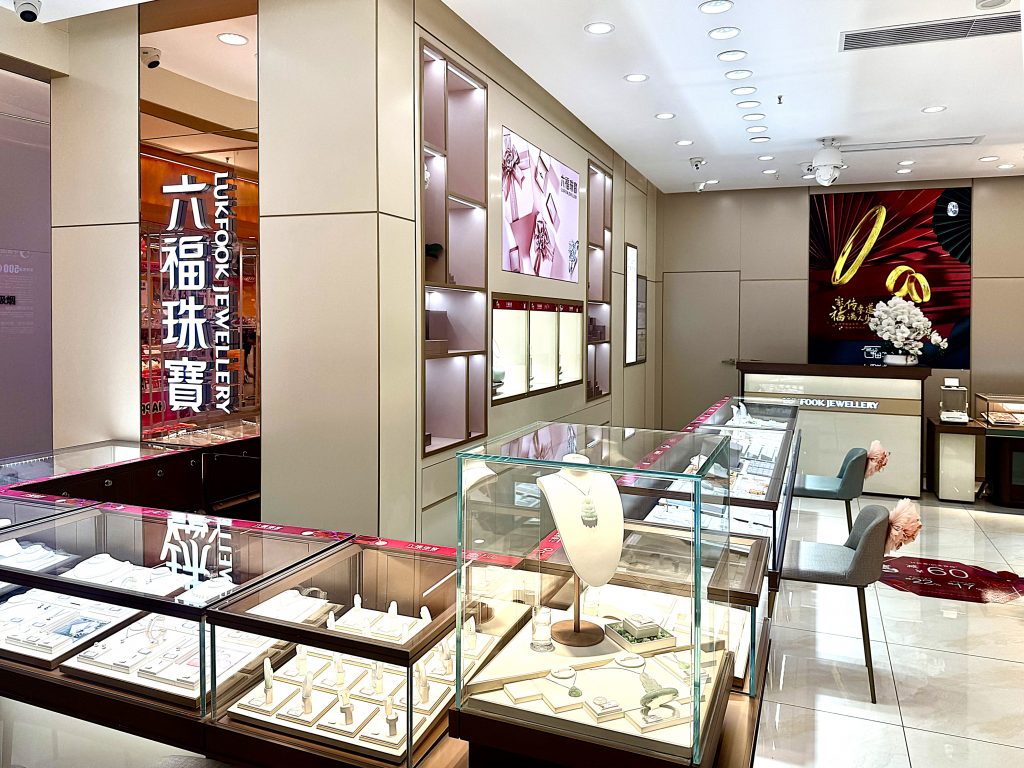 該「六福專櫃」整體設計現代時尚,珠寶飾品豐富多樣,包括有璀璨奪目的「愛很美」及「Hexicon」等鑽飾系列、精湛工藝的「冰‧鑽光影金」專利產品,及經典傳承的「福滿傳家」等黃金系列,鑽享定制服務更能滿足不同消費者的個性化需求。