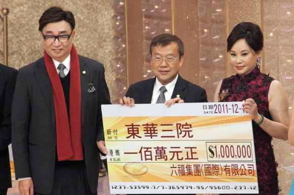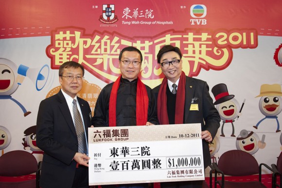 東華三院為香港甚具規模的慈善社會福利機構,為市民提供優質服務。「歡樂滿東華2011」於2011年12月10日(星期六)在電視廣播城舉行。六福集團董事兼副總經理謝滿全先生及總裁助理黃思濠先生代表該集團捐贈港幣1,000,000元整,並將捐款支票交贈予東華三院。