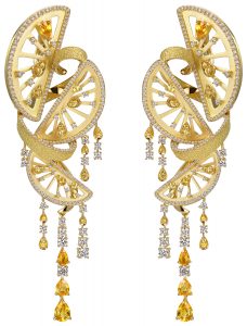 富含維他命C的橘子,配搭晶塋剔透的黃色寶石,象徵蓬勃的生命力。順暢自然的果汁線條,突顯了橘子的清新優雅。 |