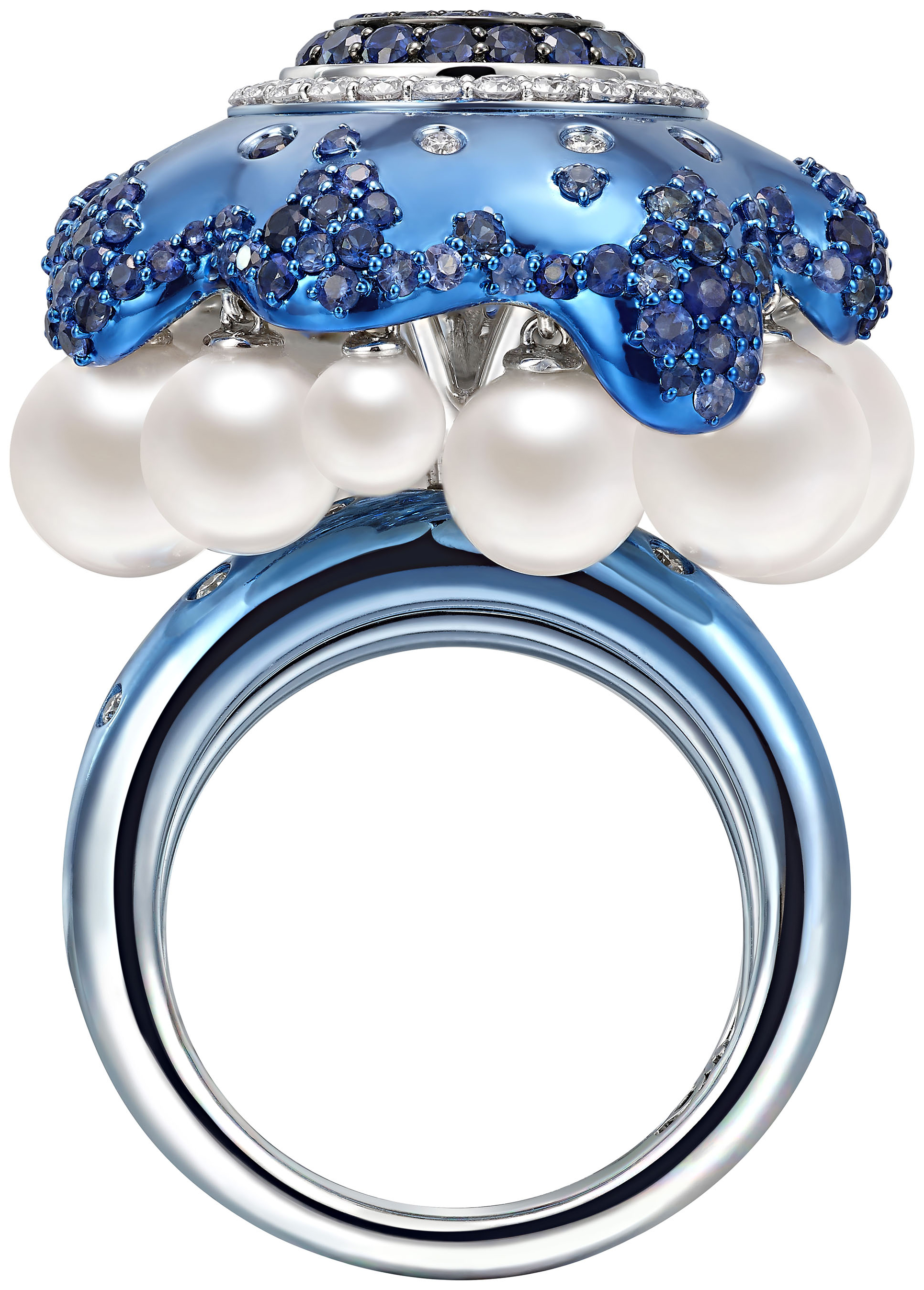神秘的藍色蘑菇和珍珠露水,而吊燈的形式呈現,突顯了大自然高貴而寧靜的美。 |