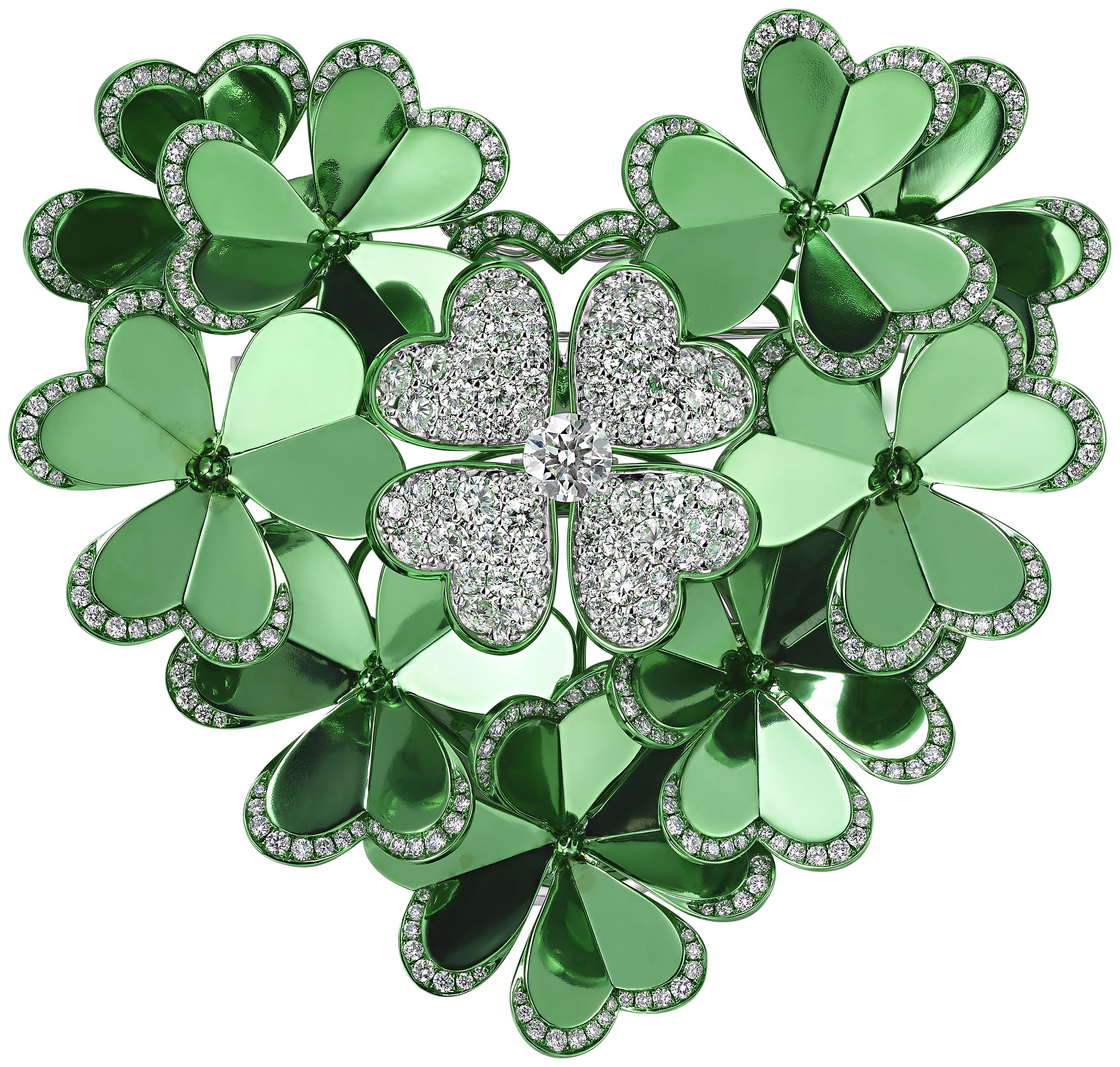 以四葉草拼湊的愛心,每片瓣都裹著鑽光,把「幸運」嵌成觸得到的溫柔,一一握在手裡,傳遞「幸運與愛」的深層寓意。 |