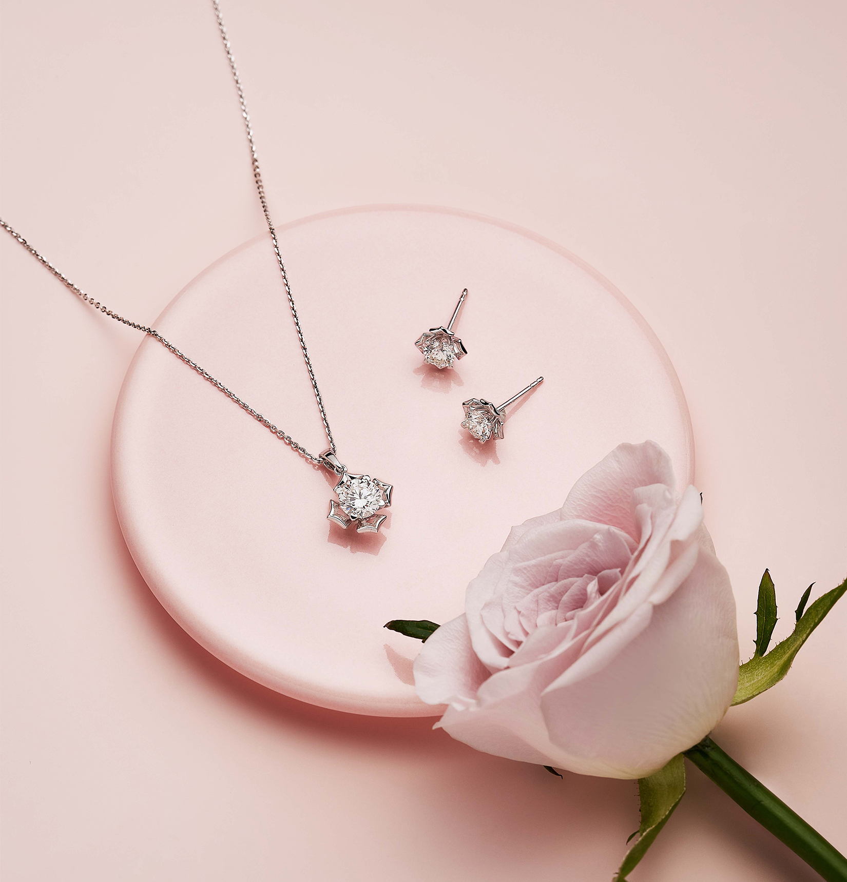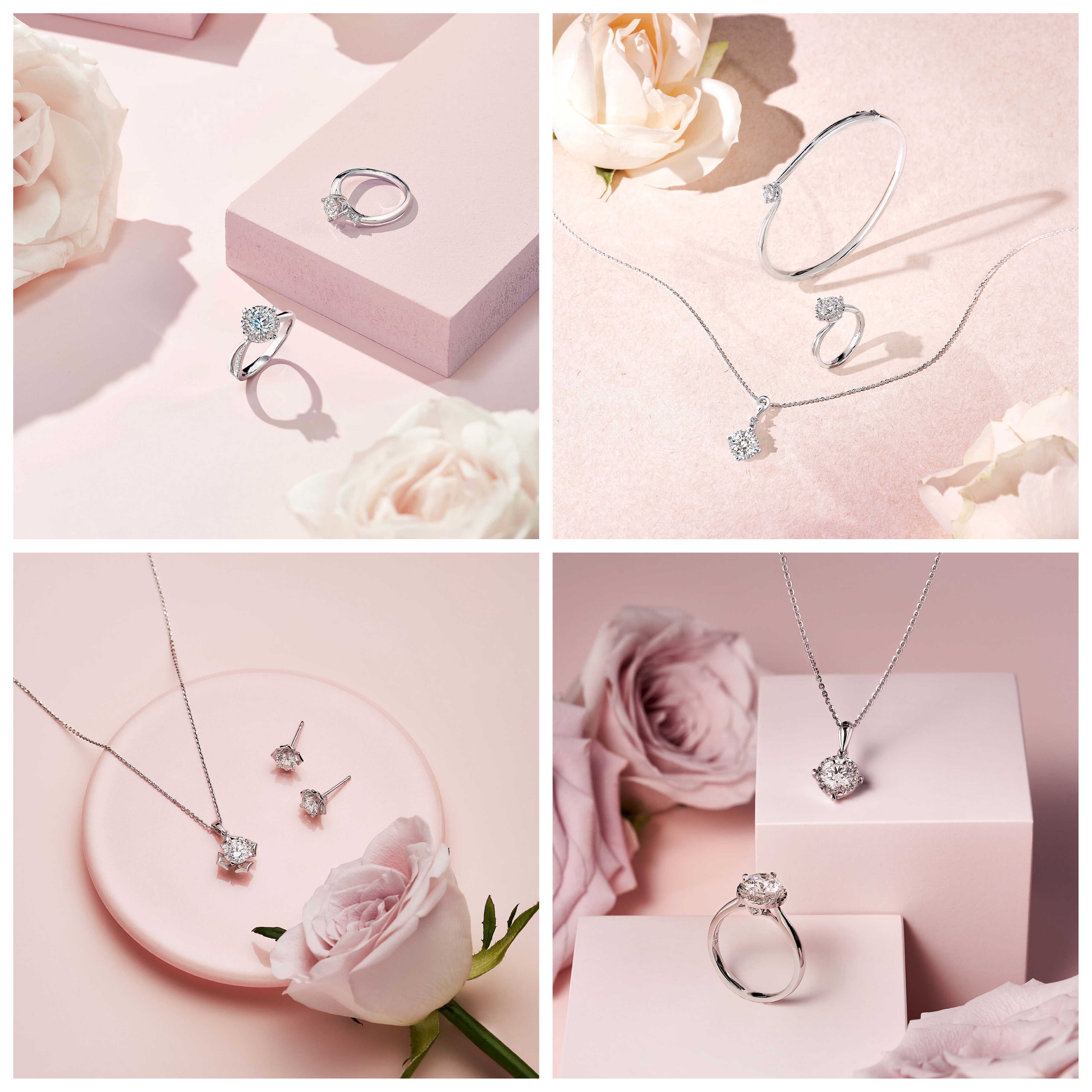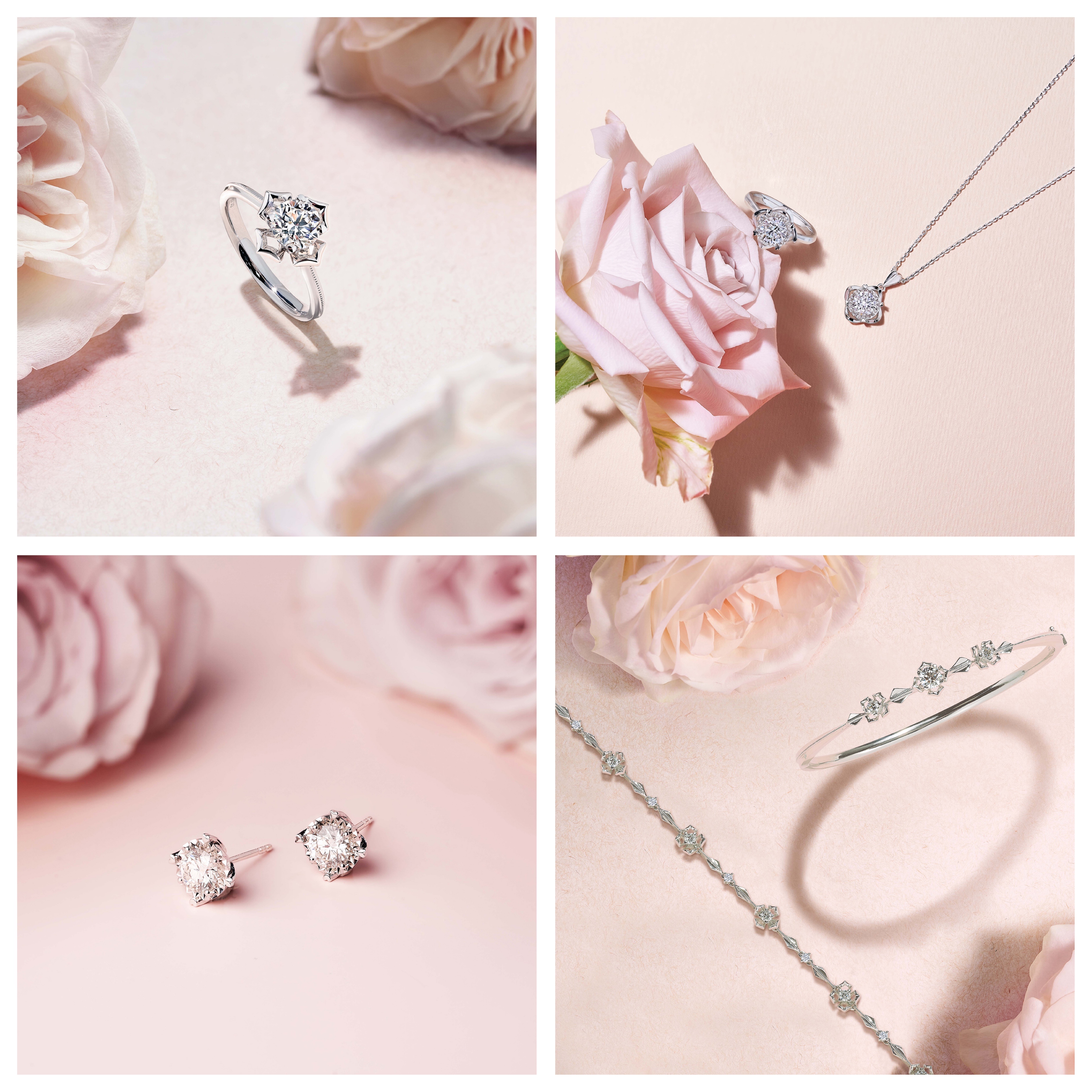全新「愛很美」18K金鑽石首飾,融合亮麗的鑽石與新穎時尚的美學設計理念,結合「放閃車花」工藝,令純淨主石視覺效果倍增,煥發如星光璀璨般的炫目華彩。