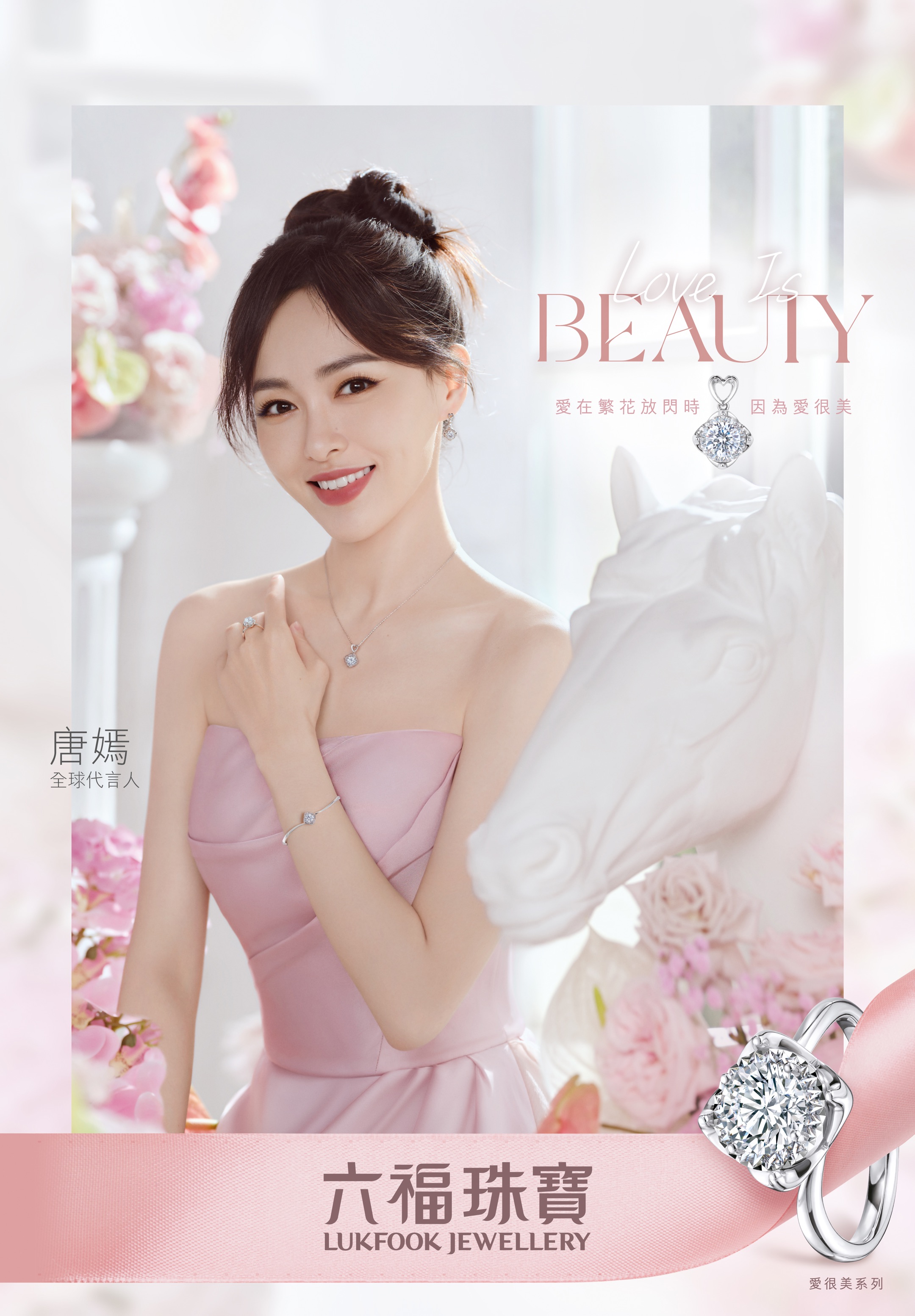 繁花放閃成鑽,萬物嫣然美好。六福珠寶全球代言人唐嫣溫婉登場!
