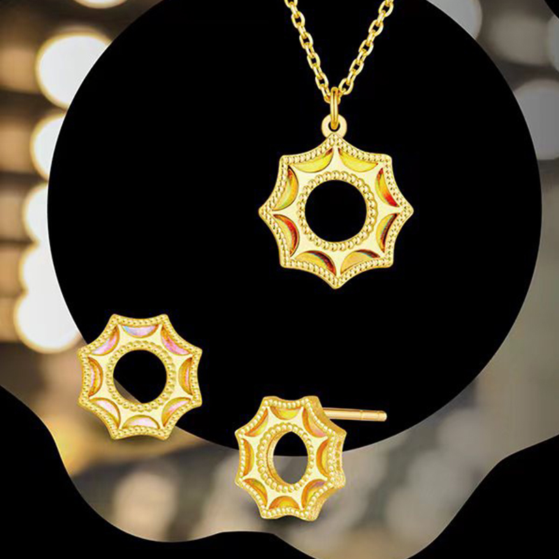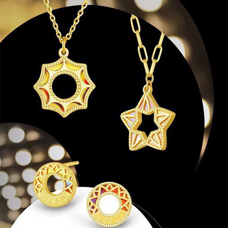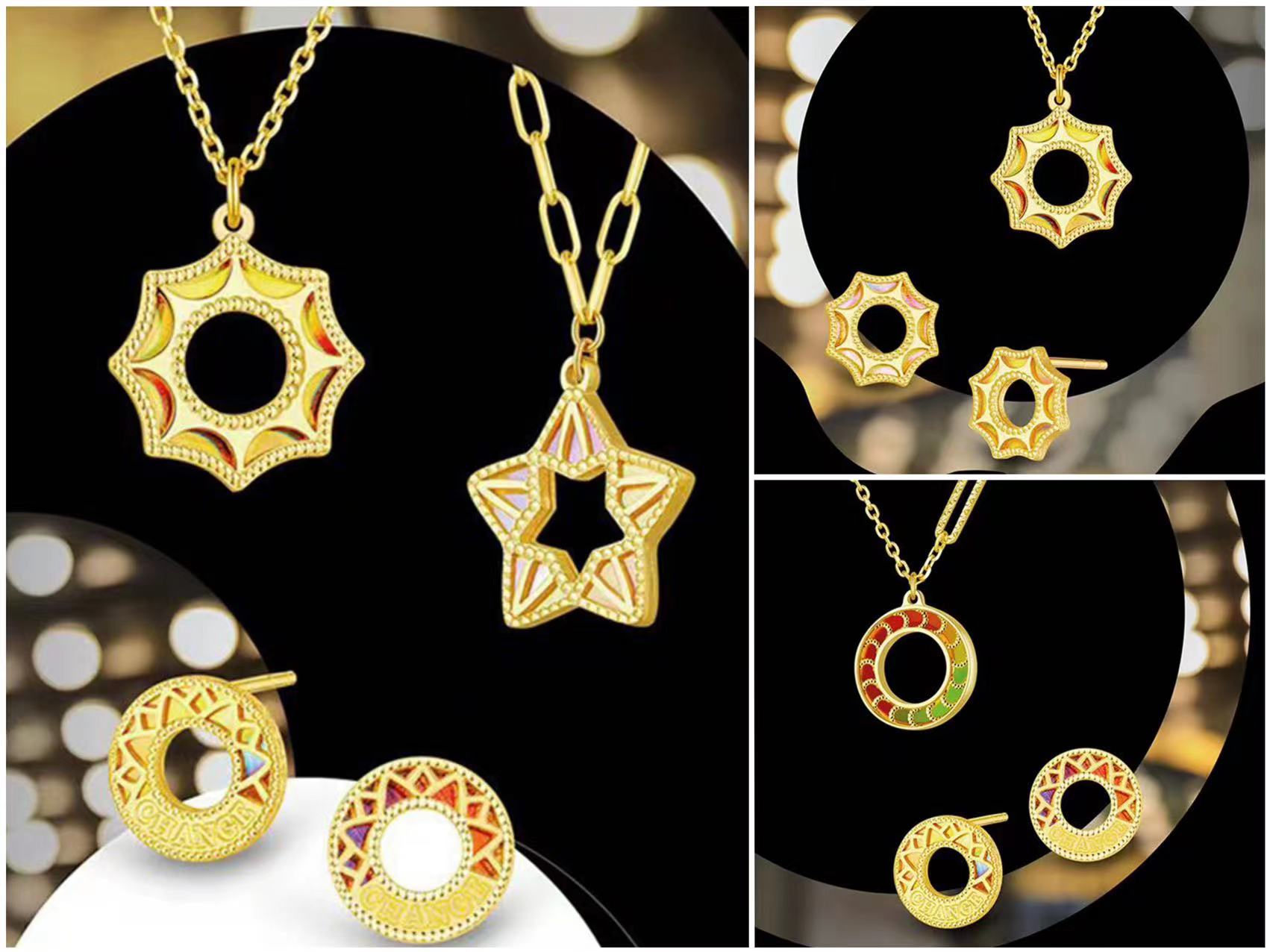全新Goldstyle「耀出彩」黃金首飾,融入圓環、太陽、星星等設計元素,立體精美,時尚大方,其時尚度可媲美K金首飾,同時亦保留了黃金保值的優勢。