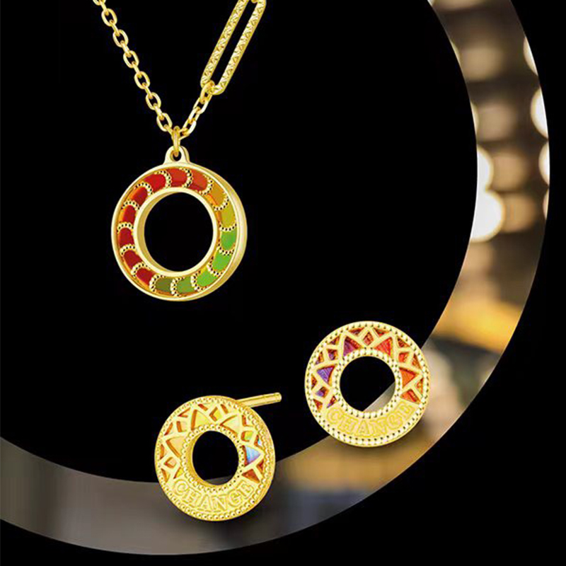 以閃耀之姿,讓生命耀出彩。Goldstyle「耀出彩」黃金首飾以獨特的黃金加硬技術,打造出多款簡約精緻的項鏈及耳環,搭配精湛的CNC炫彩工藝,在不同的光影折射下,綻放出漸變的耀眼虹彩,並化作耳畔頸間的一抹閃耀,讓你時刻釋放高雅和自信的迷人魅力。