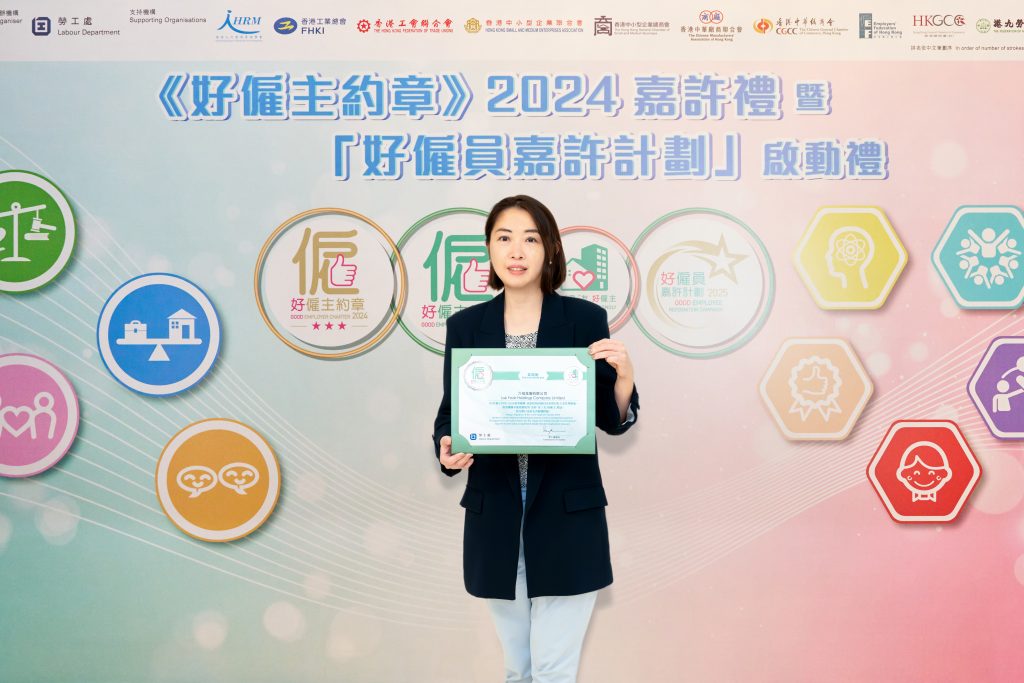 六福集團(國際)有限公司(「六福」/「集團」)(股份代號:0590)欣然宣布集團十分榮幸連續三屆成為《好僱主約章》簽署機構,並獲頒發《好僱主約章》2024證書。與此同時,集團在積極推動家庭友善工作文化方面的努力得到評審團的認可及肯定,更獲得了「為你『家』『友』好僱主」標誌認證。這不僅彰顯了集團在人事管理措施的持續努力,也體現了集團在推動成為良好僱主及營造家庭友善工作環境方面取得的顯著成果。