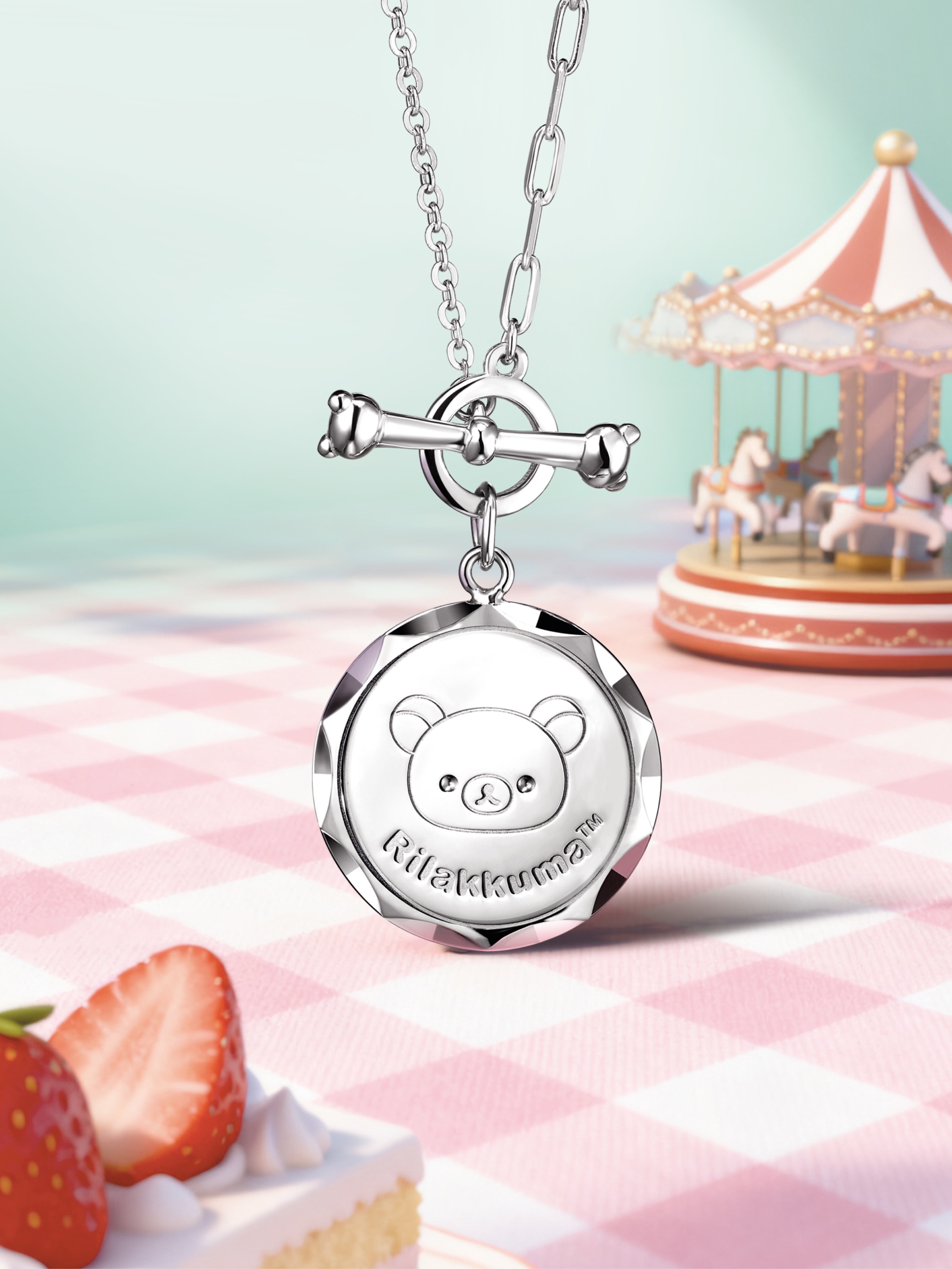 時尚經典的鉑金圓牌頸鏈,正面雕琢小熊的招牌笑臉,背面點綴蘋果圖案,更有可愛骨頭形狀的OT扣加持,扣子兩邊也是小熊頭形狀,祈願平安祝福從此輕鬆相伴。而印刻「Rilakkuma™」品牌字母的標籤牌頸鏈,則以小熊頭像點綴單側鏈身,將萌趣造型與好運祝福巧妙融合,願助力開啟幸運新程。此外,精美實用的輕鬆小熊™多功能黃金工藝品套裝,包含可作手機貼的蛋糕木馬造型金章、輕鬆小熊™貼紙及可作照片展示架的亞加力相框,記錄與珍藏每一個值得回味的精彩時刻。