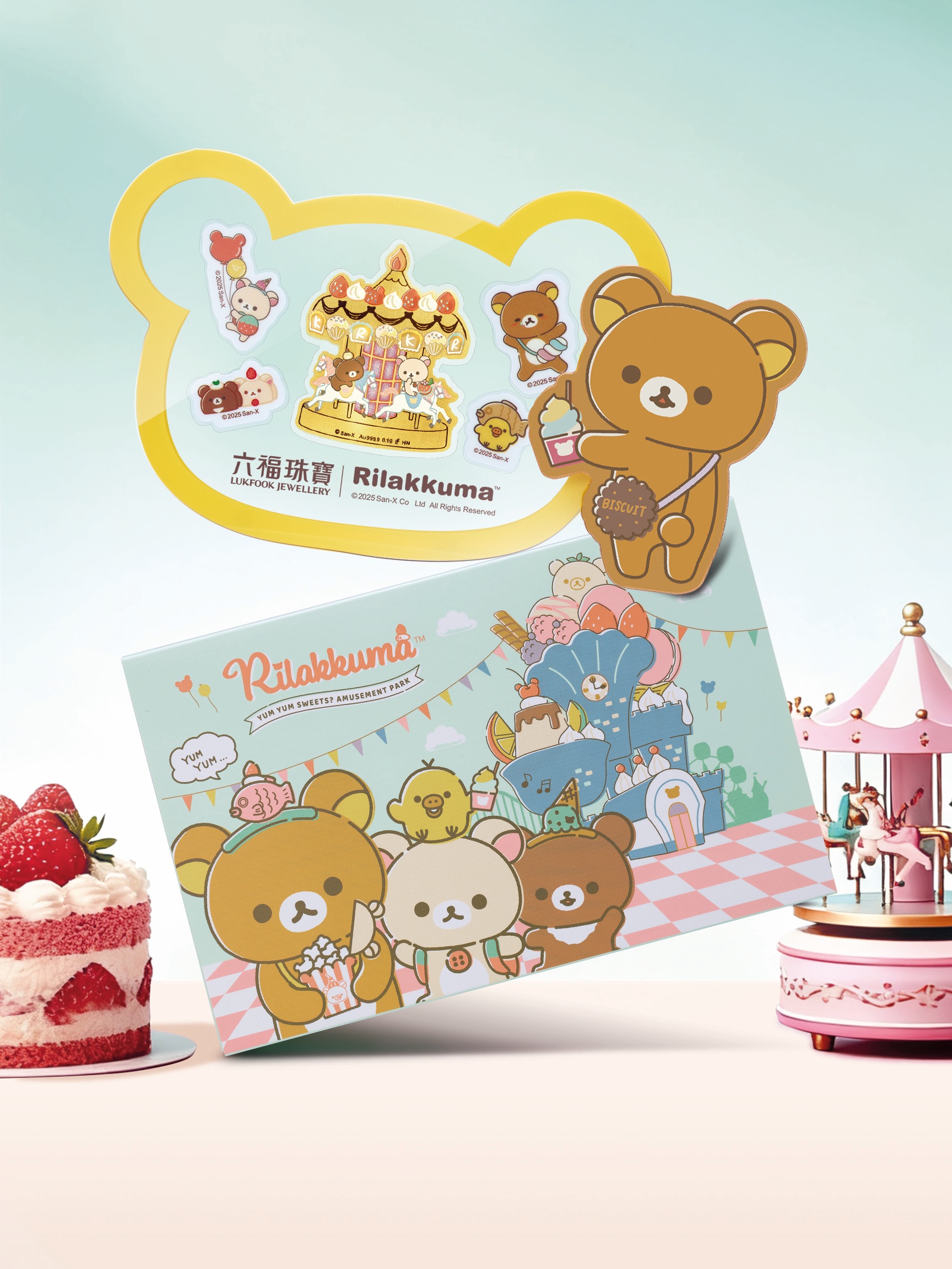 六福珠寶與日本San-X再度攜手,於全球店舖推出全新Rilakkuma™「輕鬆小熊™」黃金及鉑金新品。將「蛋糕木馬的歡樂、幸運蘋果的祝福、上上簽的期許」等元素立體呈現,攜「純真鉑金」與「悠然哲學」空降六福珠寶!