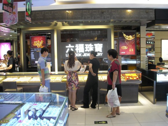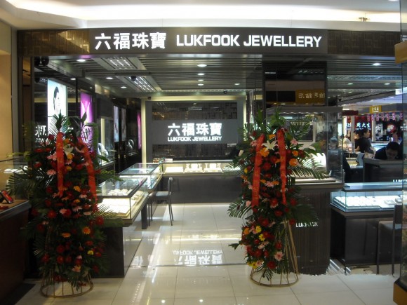 該店位於銀座商城西館一樓,採用全新第五代裝修形象,招牌牆延續店鋪華麗而沉實的氣氛,以古銅鋼作結構性裝飾,在視線高度加入的六福珠寶LED發光字醒目地帶出店鋪主題,其餘位置以LF圖案組合而成的特色玻璃作裝飾亦達至華麗的效果。開業當日,專櫃更以鮮花為點綴,盛裝迎接賓客。