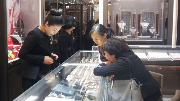 開業當日,鑼鼓喧天,喜慶熱鬧,當地居民紛紛慕名而至。六福專櫃憑藉著典雅大氣的裝潢風格、琳琅滿目的精美珠寶首飾,展現出了六福珠寶的獨特魅力,吸引了眾多顧客駐足挑選心儀的珠寶首飾。銷售人員為每一位前來選購的顧客提供專業的導購服務,或細心推薦飾品,或貼心提供試戴服務,令顧客從進店至離開,每分每秒都能享受到賓至如歸的服務,開心而來,滿意而歸。