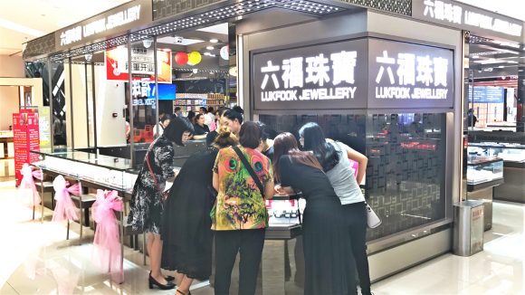 六福專櫃位於商場手扶電梯口,極具位置優勢,而通透明亮、尊貴典雅的裝潢形象,盡顯六福獨特的品牌魅力,吸引了眾多顧客駐足選購。店鋪內悉心熱情的銷售人員,營造出賓至如歸的服務氛圍;琳琅滿目的珠寶首飾,更是滿足了不同人群的選購需求。「六福珠寶」憑藉優質的服務及精湛的產品,將為更多顧客帶來非凡的購物體驗與樂趣。