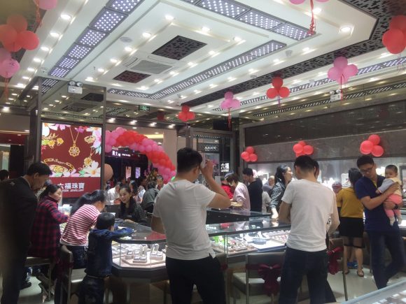 「晉江安海優越廣場」位於金沙城裙樓,建築面積近2萬平方米,坐擁城市繁華核心,其“全生活livingmall”的購物概念更令顧客體驗了全新的消費模式。六福專櫃以尊貴大方的裝修風格、舒適優雅的購物環境及琳琅滿目的珠寶首飾,成功吸引眾多顧客駐足進場選購,於品類繁多的購物中心盡顯優勢,展現高端、奢華的新面貌。