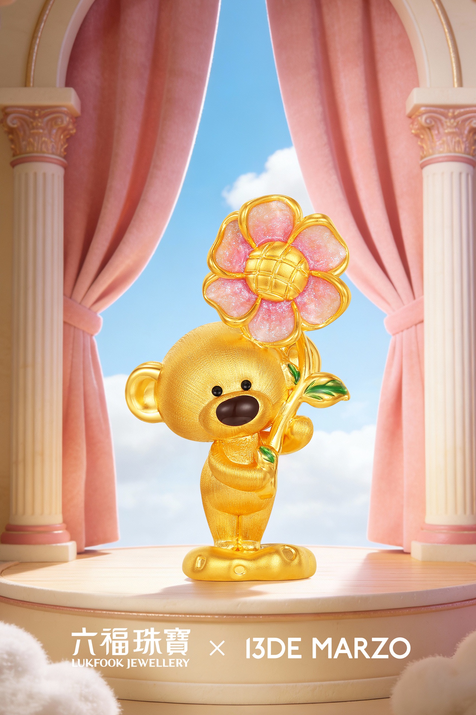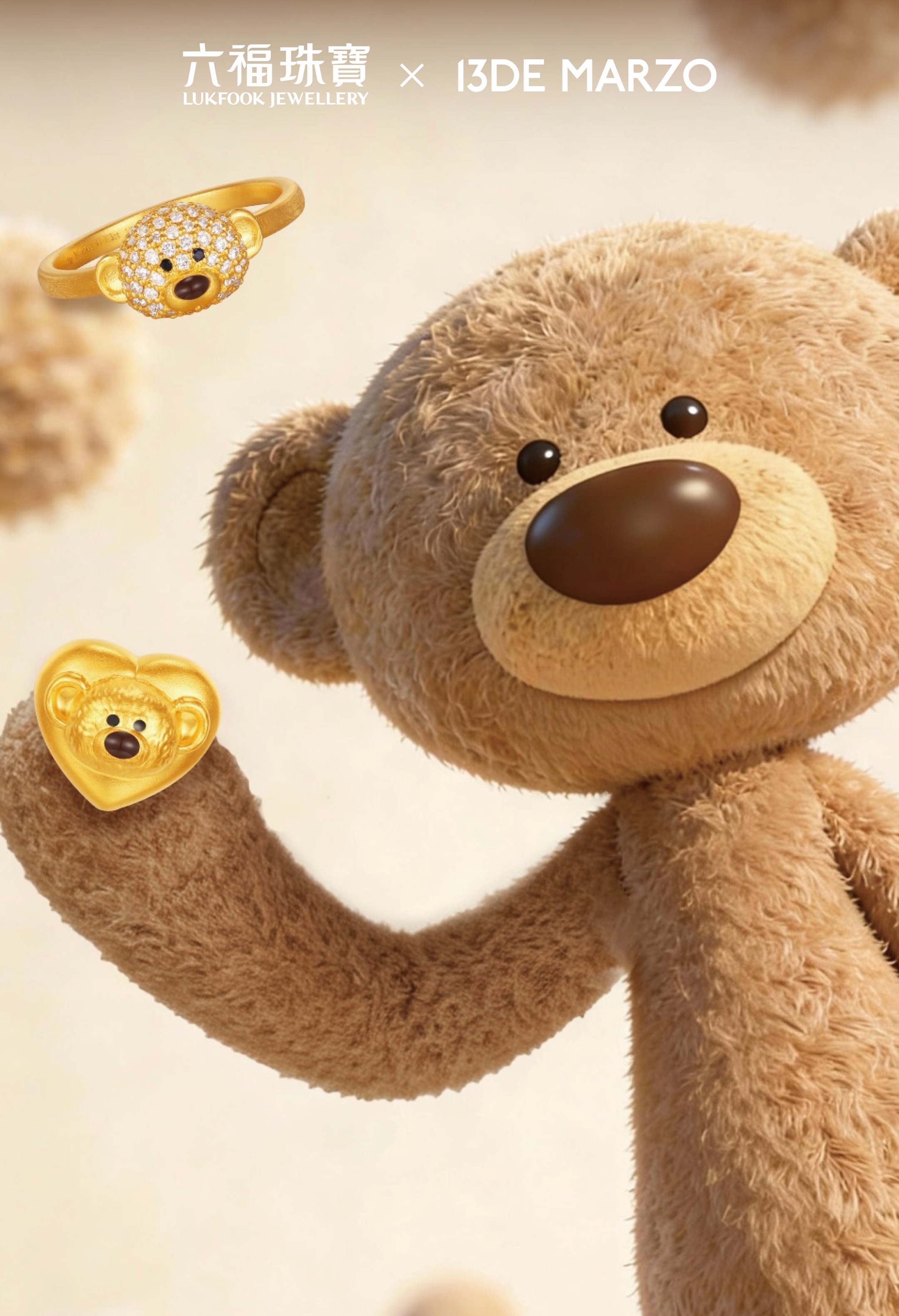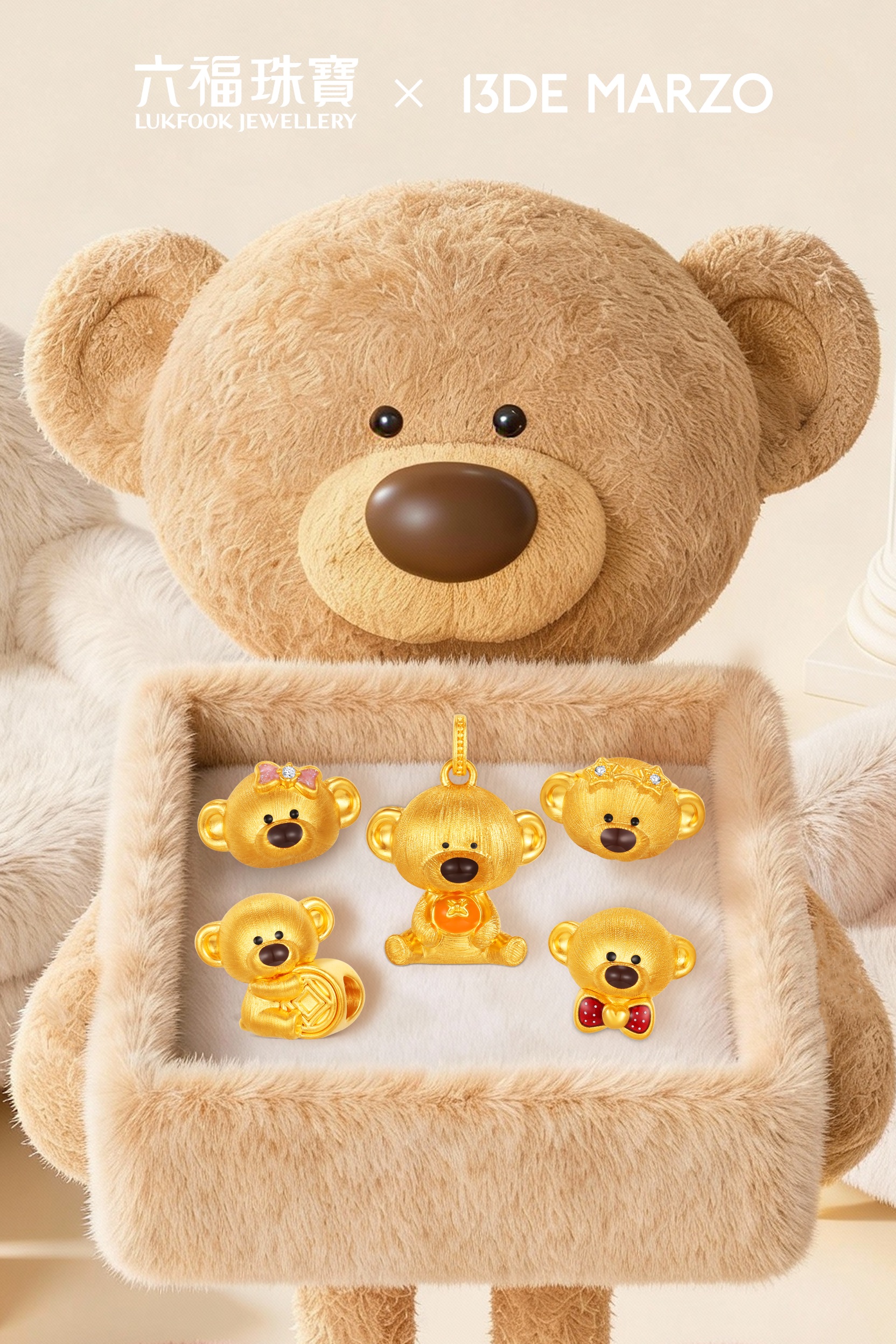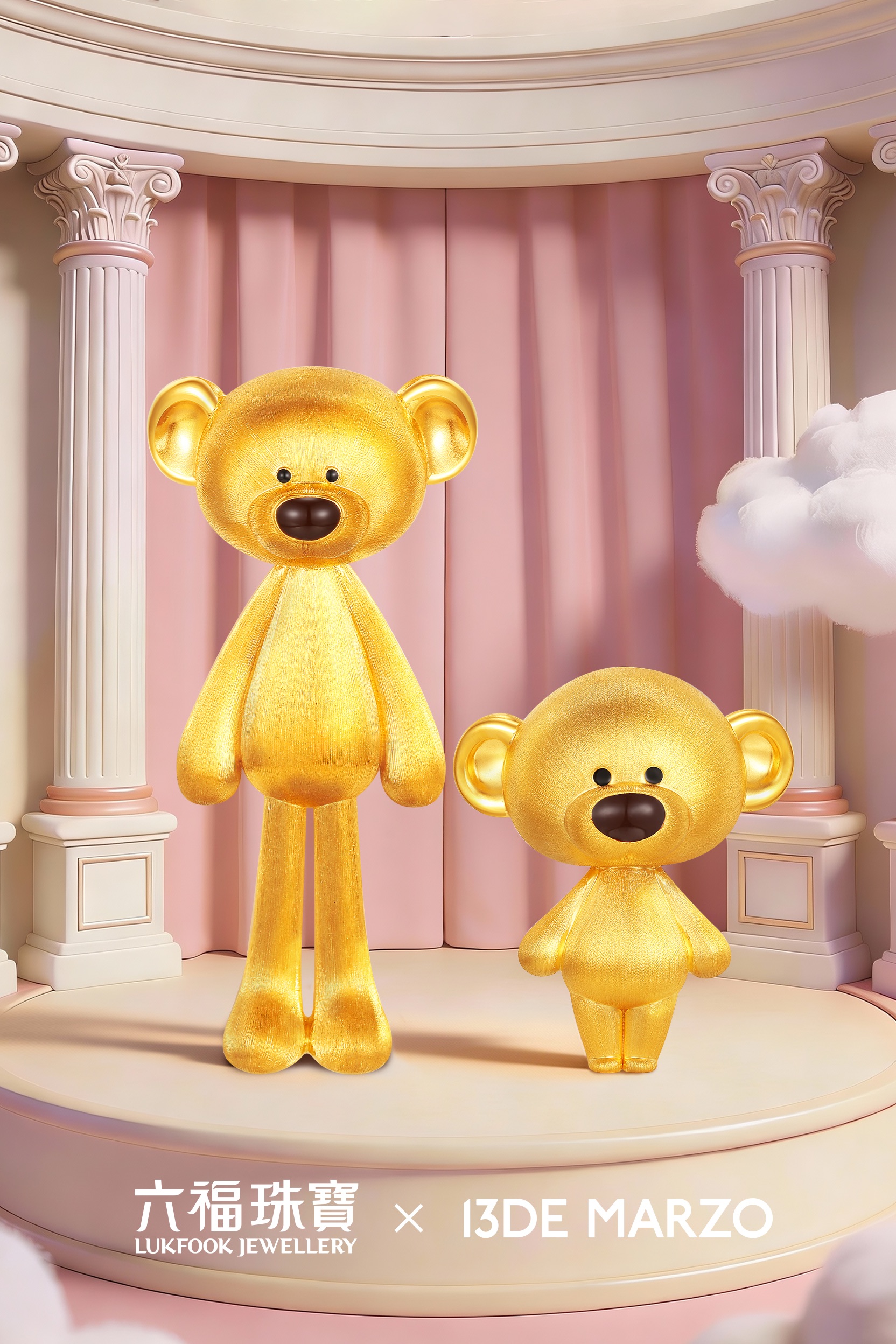 六福珠寶攜手時尚潮流品牌13DE MARZO,打造全新「13DE MARZO」聯名系列。系列從品牌標誌性的「Marzo Bear」中汲取靈感,把玩偶元素的萌趣可愛融入黃金藝術之中,將潮流態度與黃金工藝深度融合,既延續了13DE MARZO大膽鮮明的個性表達,也秉持了六福珠寶對精湛工藝與卓越品質的追求,以古法金、5D硬金、拉絲、鎏彩等工藝,打造多款形態的潮趣小熊,契合陪伴、守護、示愛、節日等不同的場景。黃金的溫潤質感包裹著溫暖的柔軟內核,Marzo Bear在每次閃光中散發超萌感染力,締造真摯的情感聯結。