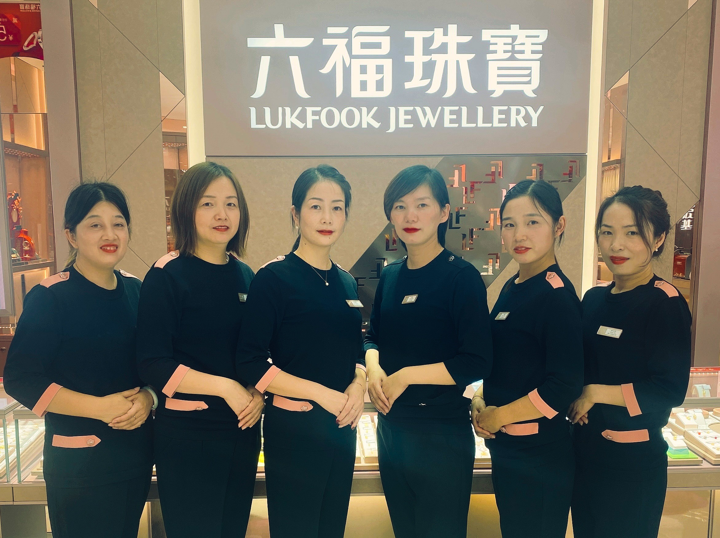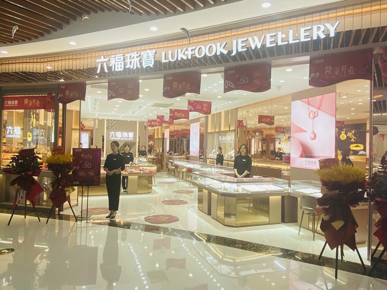 該「六福珠寶」專櫃位於購物中心一樓,店鋪採用全新輕奢時尚的裝修風格,處處體現精緻典雅的現代感細節,搭配柔和的香檳金色,更顯優雅韻味。步入店內,不僅能領略到精品首飾所散發出的璀璨光芒,顧客佩戴於身,則更顯閃耀非凡、搖曳生姿。與此同時,店內銷售人員熱情專業,透過細緻入微的貼心服務,令顧客備感歡愉及舒適,盡顯六福珠寶「匠心獨運,服務為本,以客為先」的品牌經營理念。