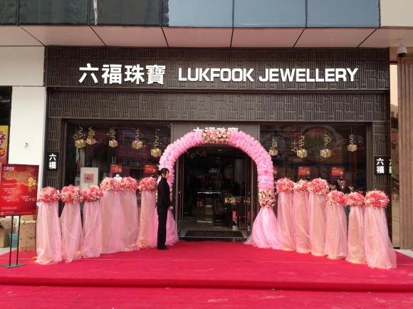 開業當天,華麗的花柱簇立于店舖大門兩側,与矚目的大型拱門及大紅的地毯互相映襯,盡顯六福珠寶「香港名牌 國際演繹」之高檔、時尚魅力。而店內櫥窗上的新年貼紙与天花上懸掛的三色氣球,更添一份喜慶熱鬧。當顧客細心挑選心儀的珠寶首飾時,銷售人員親切耐心的服務,令其備感歡愉及滿意,這充分彰顯六福珠寶「服务为本以客为先」的品牌理念。