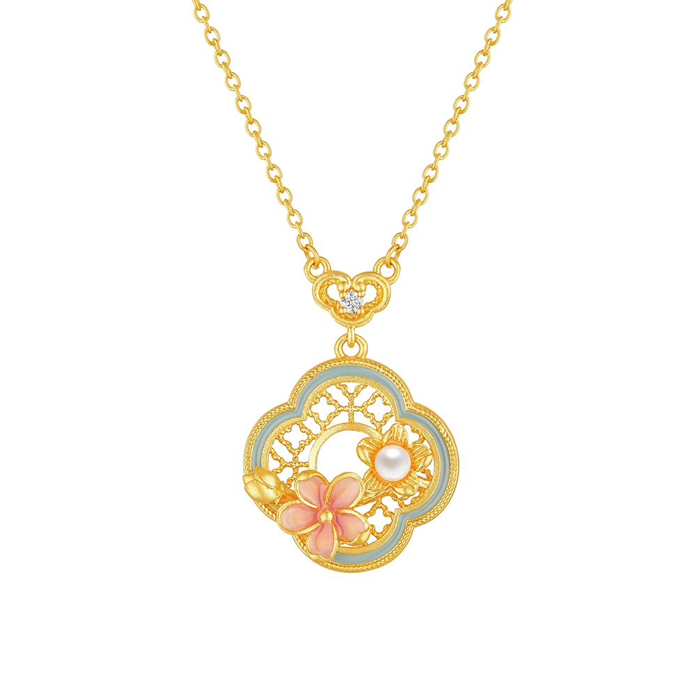 輕鬆小熊™系列"輕鬆小熊™及櫻花"18K金鑽石墜飾