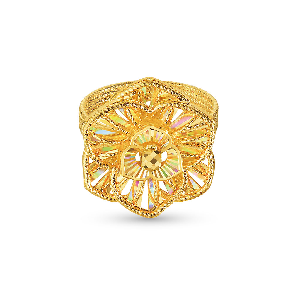 福滿傳家系列"花開並蒂"黃金對戒