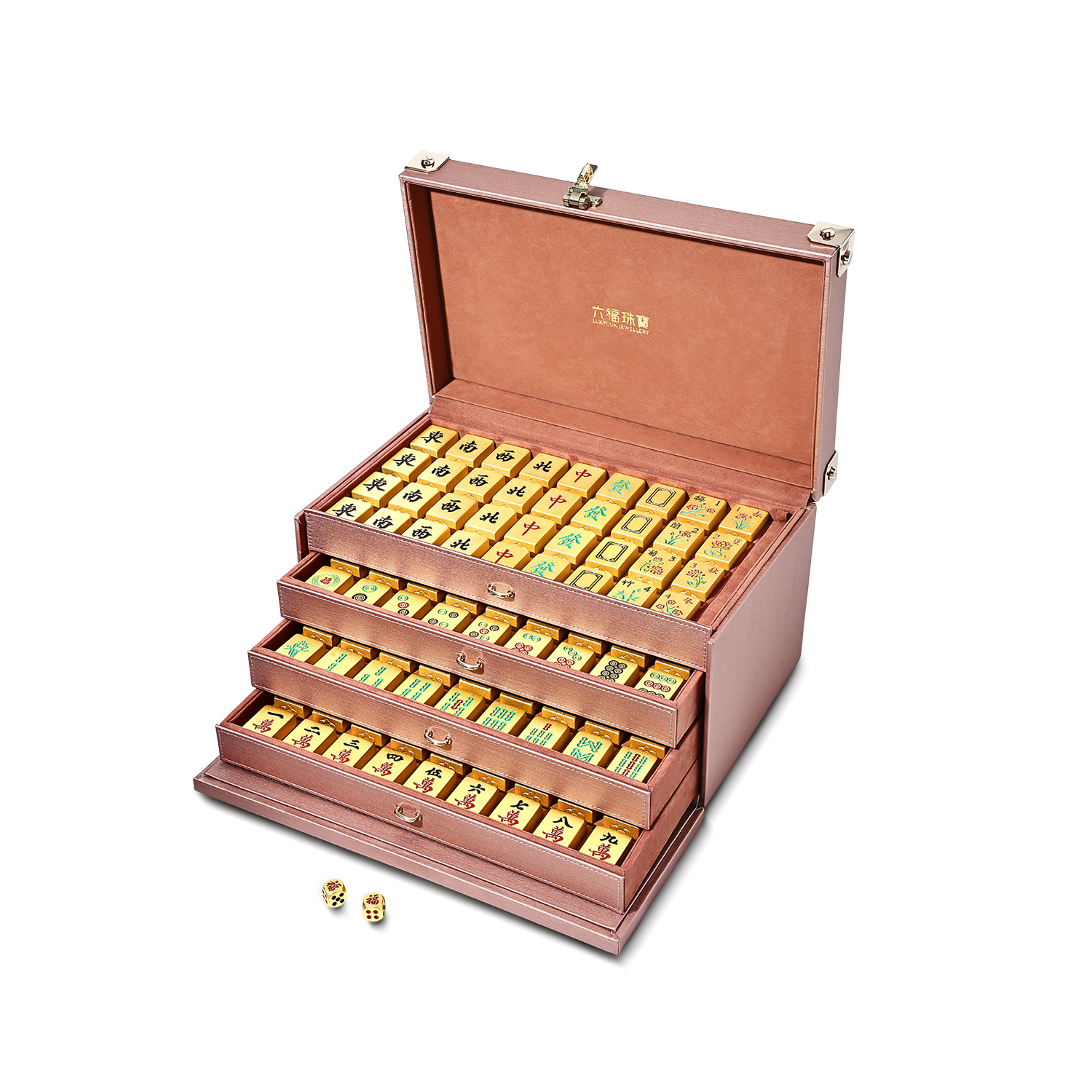 設計師匠心以中華經典國粹為設計靈感的黃金麻將,亦採用獲國家發明專利的”實體電鑄技術”打造,細緻雕刻麻將圖案,與日常耍樂的麻將同樣充滿觸感,拿上手把玩亦不易變形。將富麗堂皇的黃金麻將擺放於家中或饋贈好友,盡顯奢華氣派,亦能彰顯擁有者不凡的高端格調。