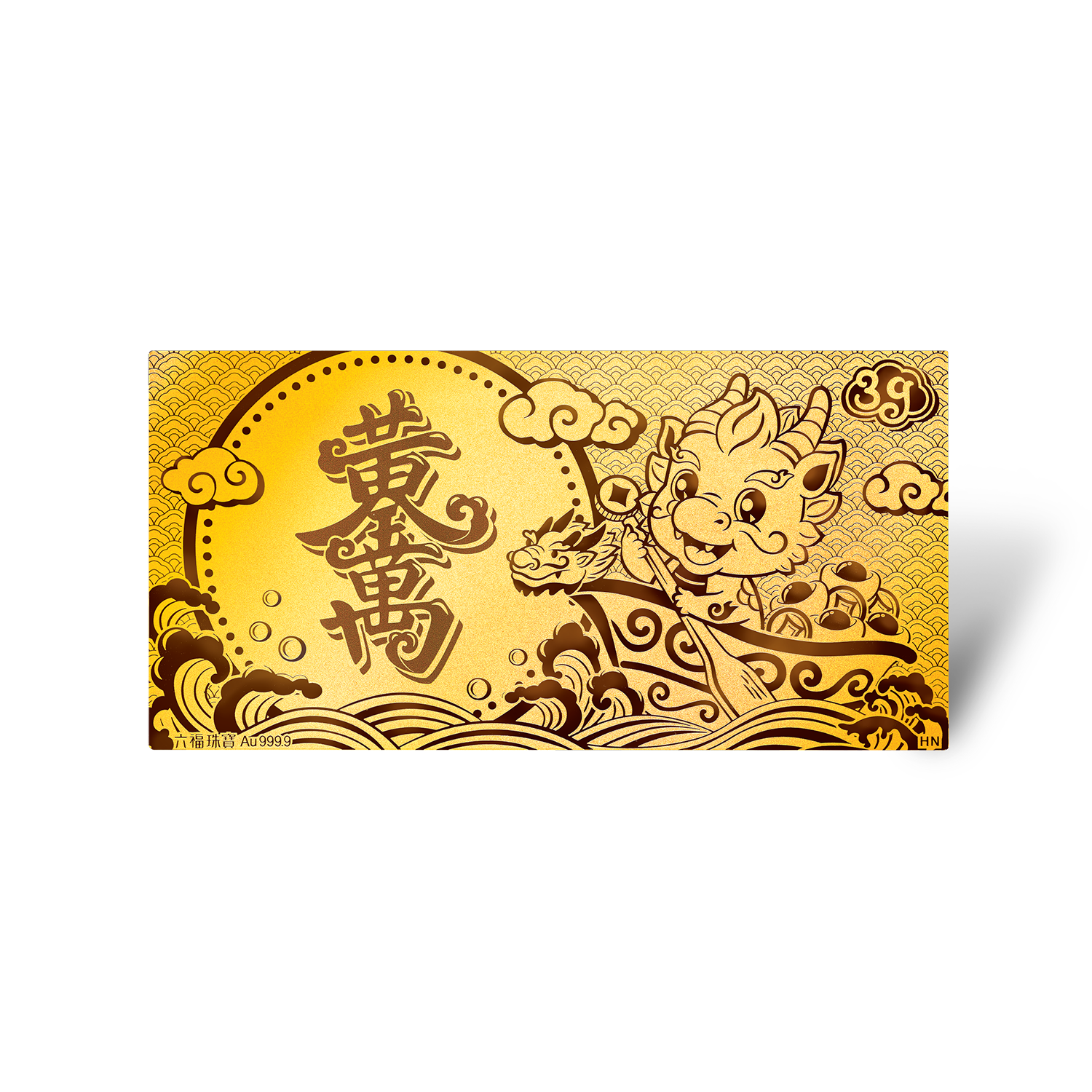 將萌版瑞龍滿載黃金萬兩,乘浪歸來的畫面融入金利是設計中,搭配祥雲網底凸顯質感,寓意大展鴻圖、平安富貴。訂製版金利是可按個人喜好印上姓氏、公司名稱或相片等專屬內容,作為商務贈禮或是親朋饋贈,體現出贈禮者體貼的心意。